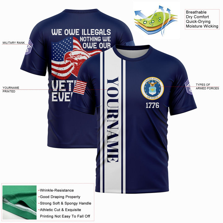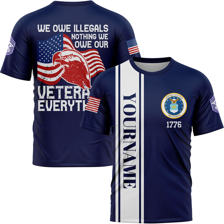 Custom Navy We Own Illegals Nothing We Our Veterans Everything 1776 Military Rank Name Veterans Day T-Shirt