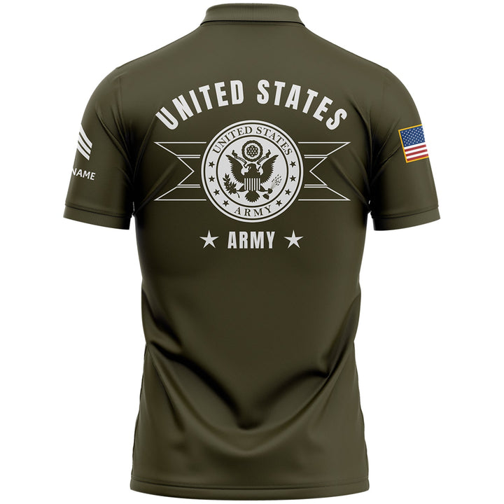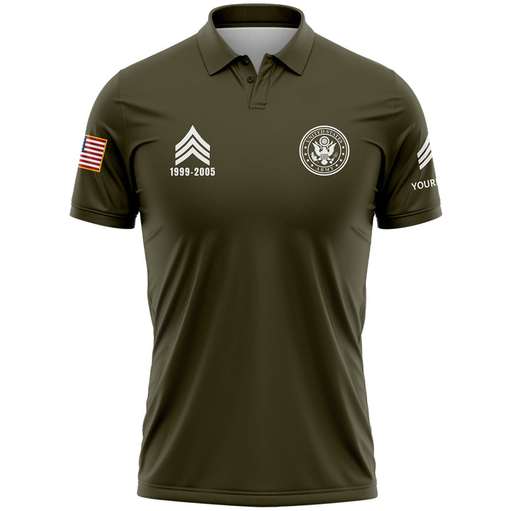 Custom OIive U.S Army Military Rank Veteran Name Golf Polo Shirt