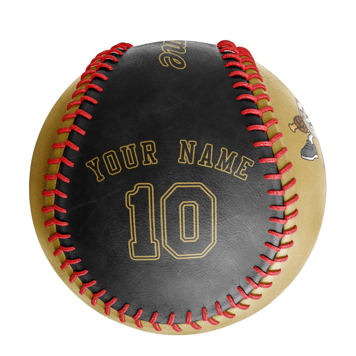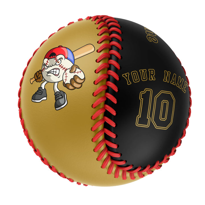 Custom Old Gold Black Split Half Leather Black Authentic Baseballs