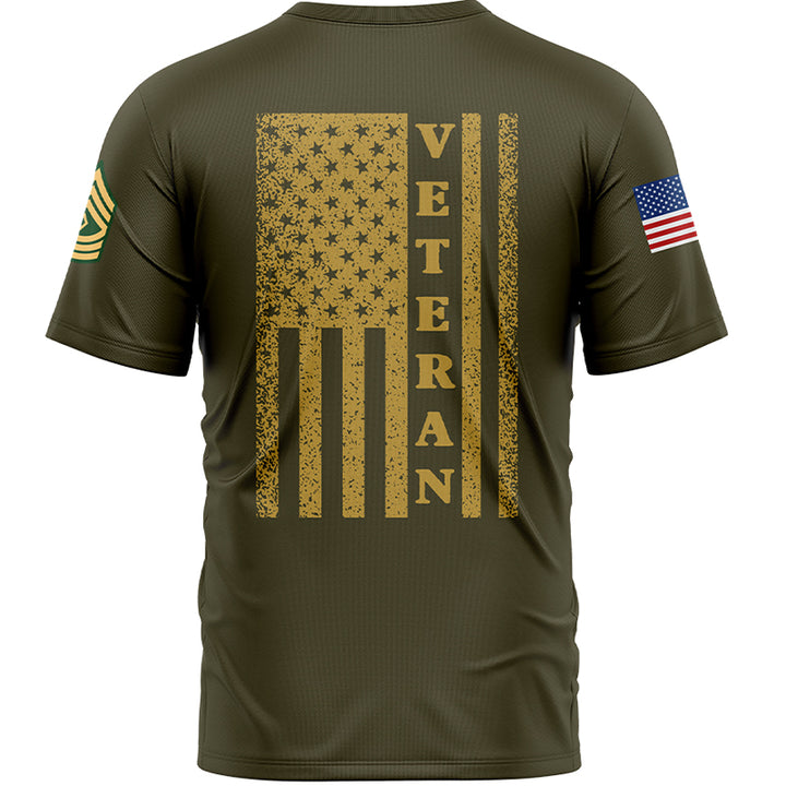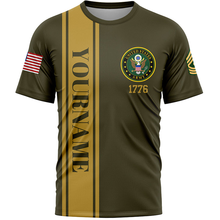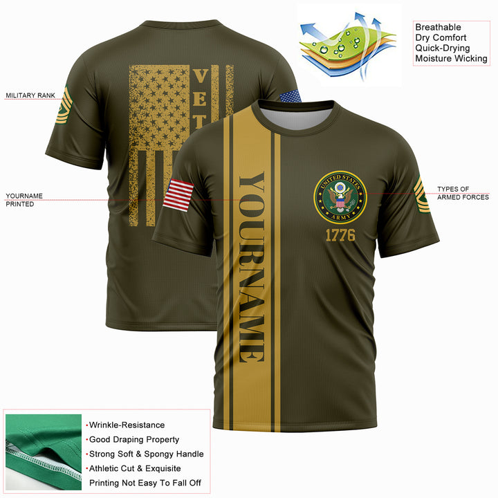 Custom Olive 1776 American Flag Military Rank Name Veterans Day T-Shirt