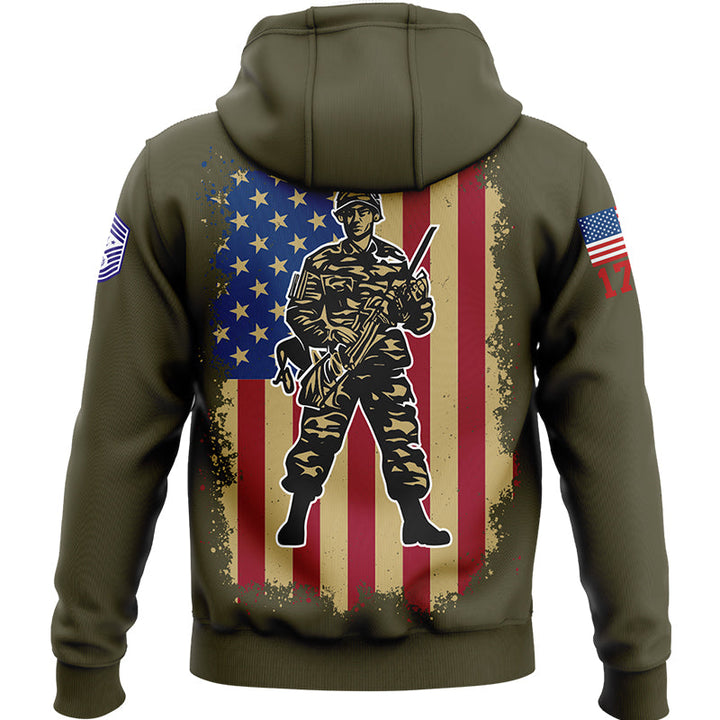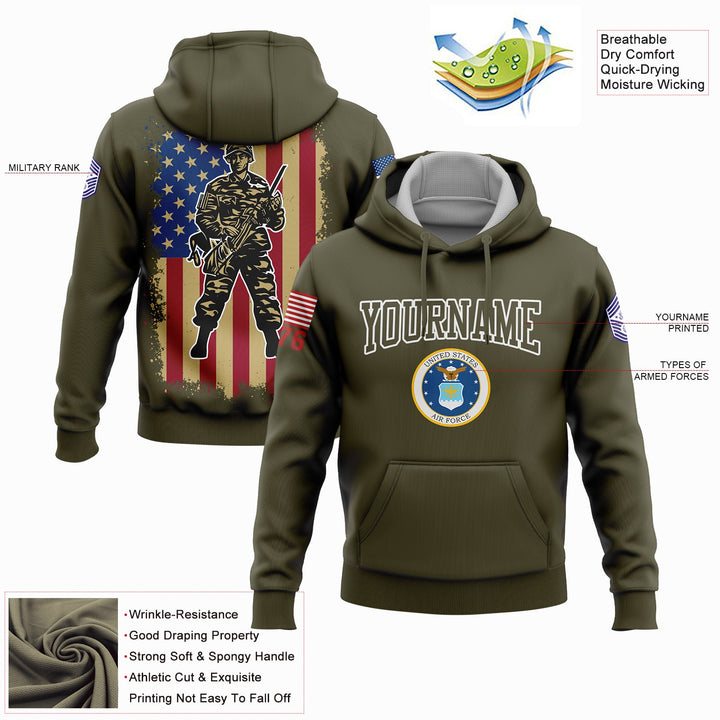 Custom Olive 1776 American Flag U.S Air Force Military Rank Name Hoodie