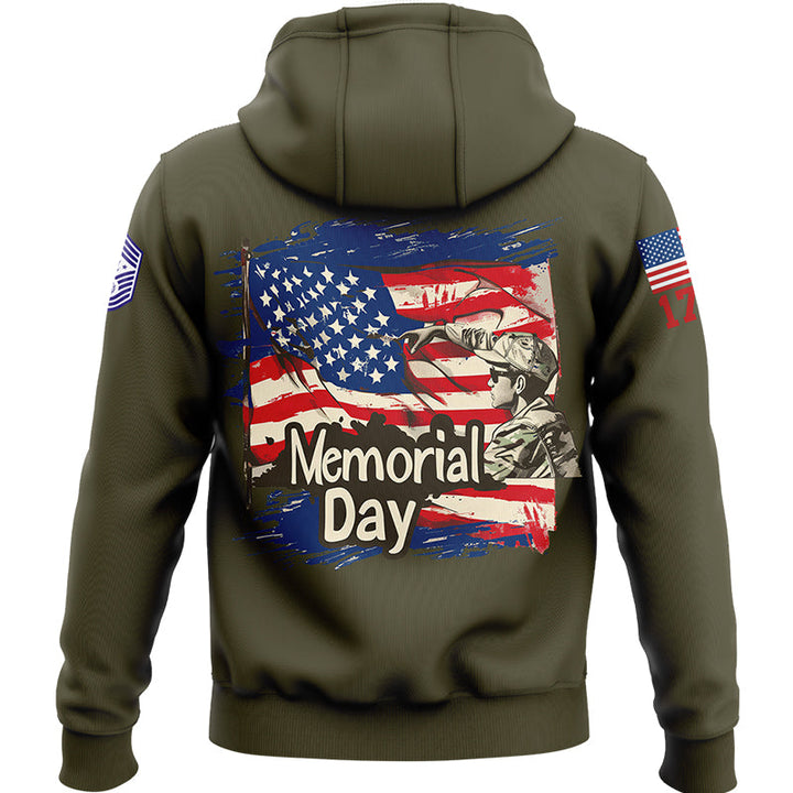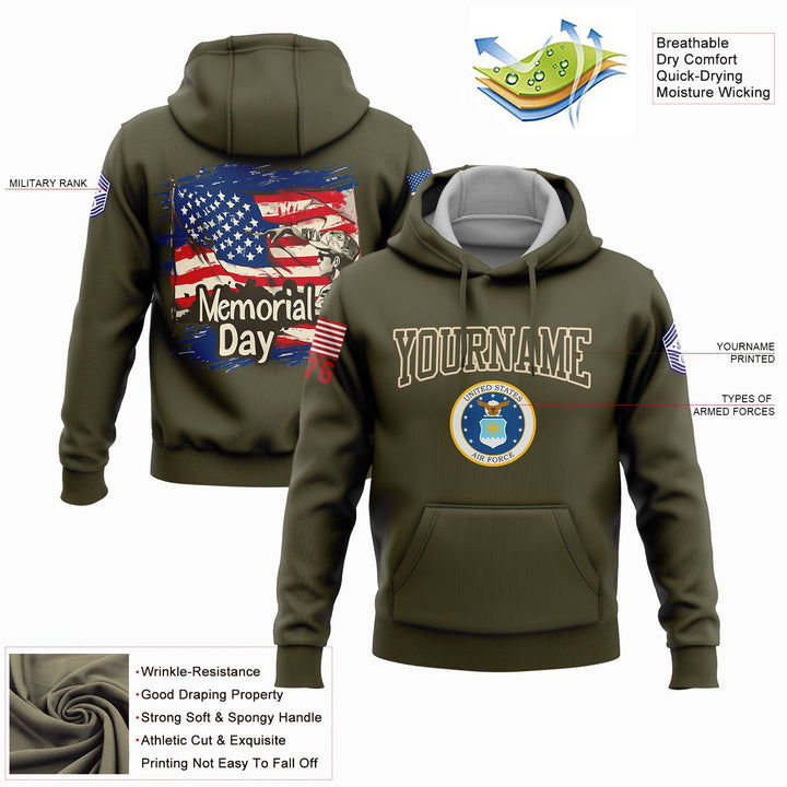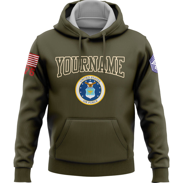 Custom Olive 1776 American Flag U.S Air Force Military Rank Name Memorial Day Hoodie