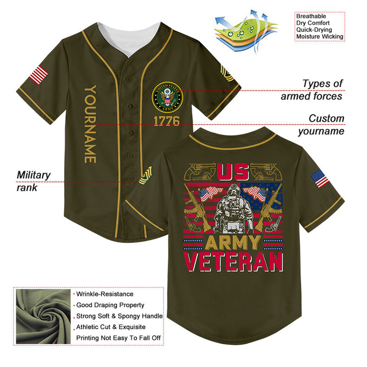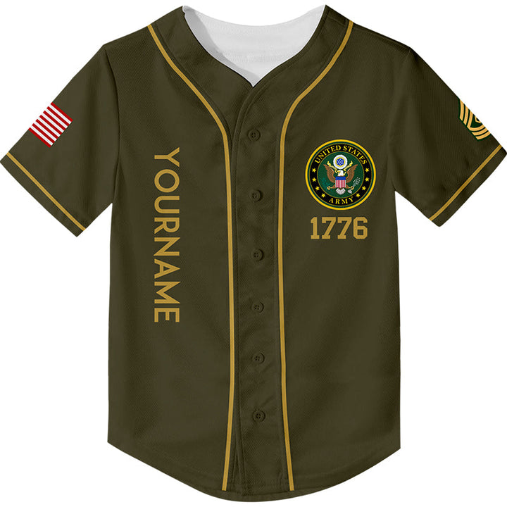 Custom Olive 1776 American Flag U.S Army Military Rank Name Baseball Jersey