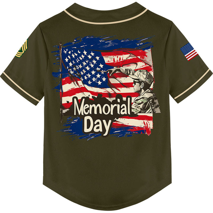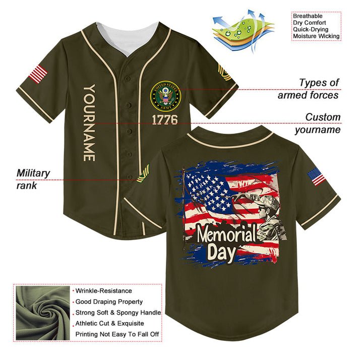 Custom Olive 1776 American Flag U.S Army Military Rank Name Memorial Day Baseball Jersey