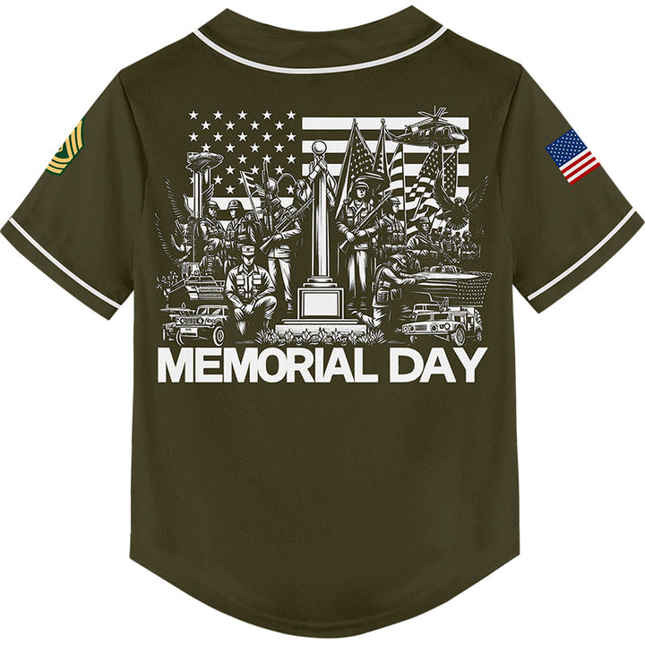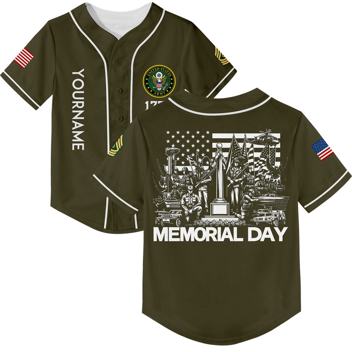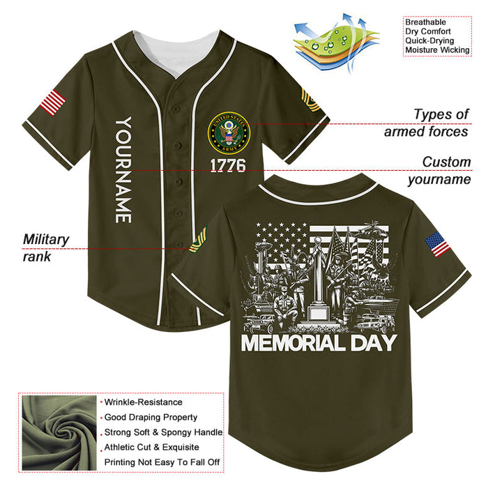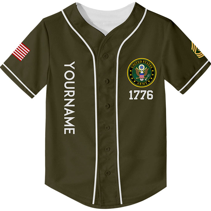 Custom Olive 1776 American Flag U.S Army Military Rank Name Memorial Day Baseball Jersey