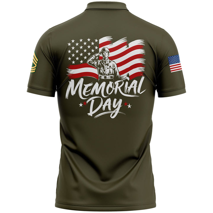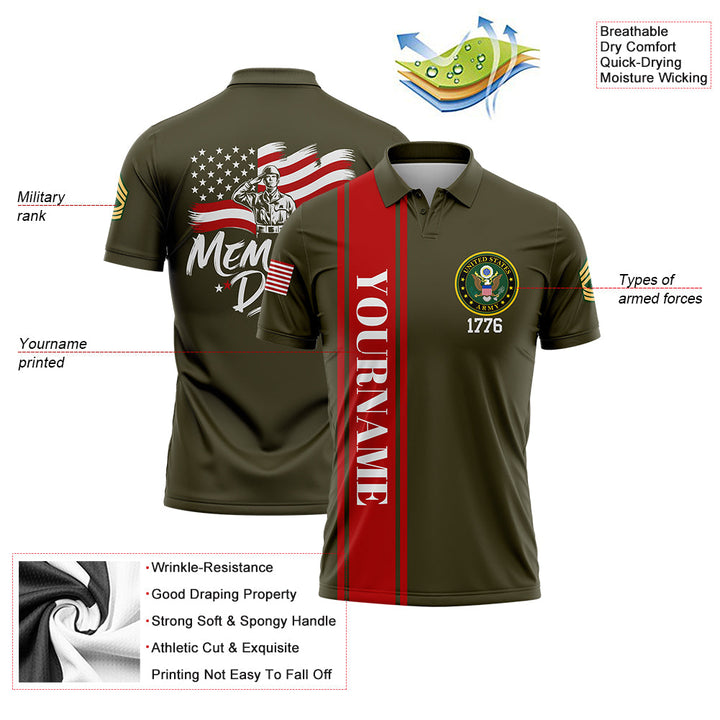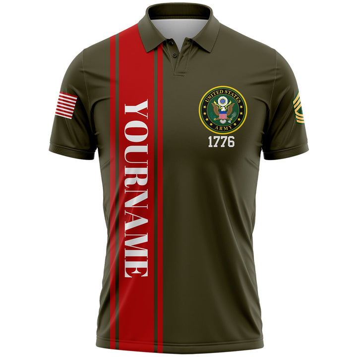 Custom Olive 1776 American Flag U.S Army Military Rank Name Memorial Day Golf Polo Shirt
