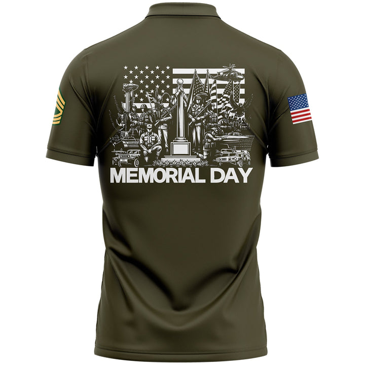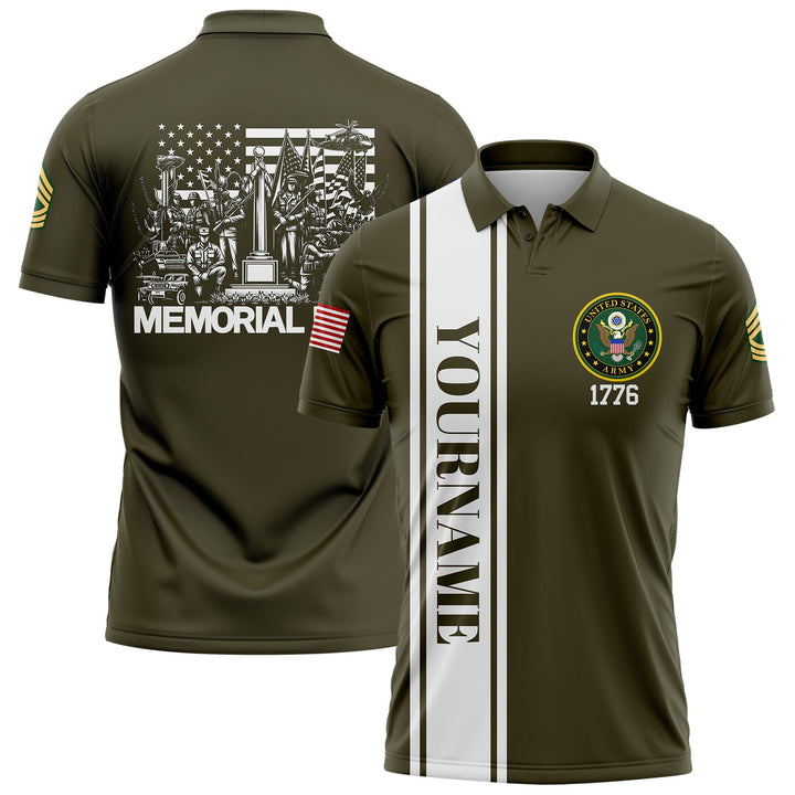 Custom Olive 1776 American Flag U.S Army Military Rank Name Memorial Day Golf Polo Shirt