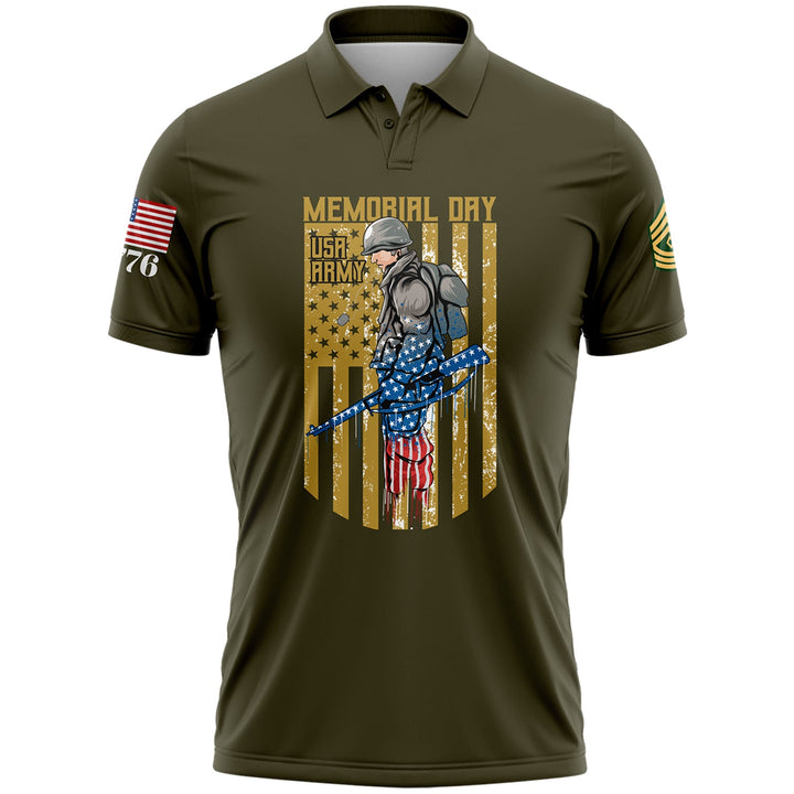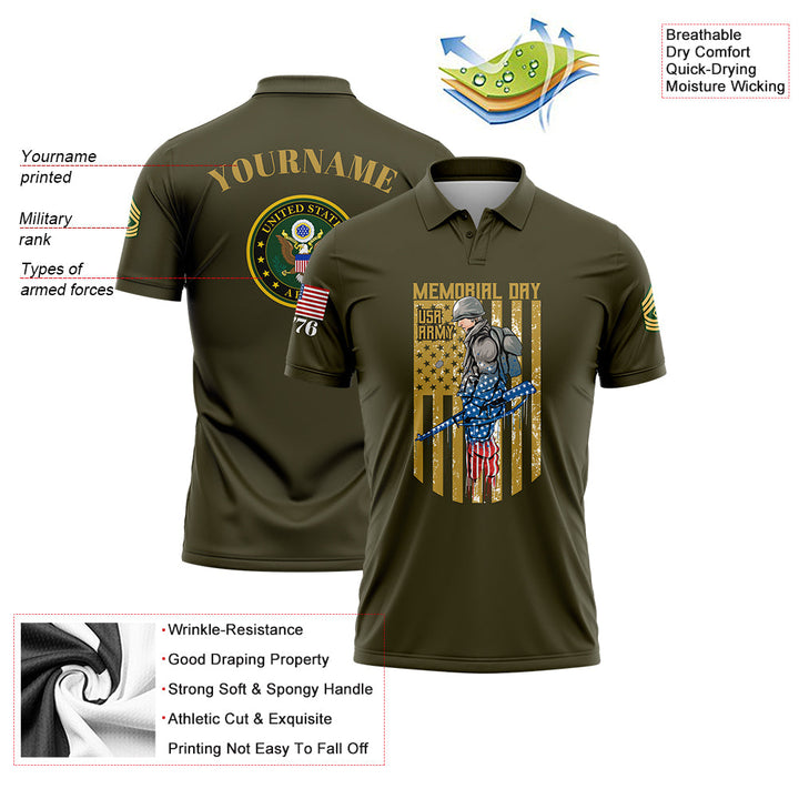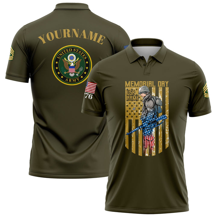 Custom Olive 1776 American Flag U.S Army Military Rank Name Memorial Day Golf Polo Shirt