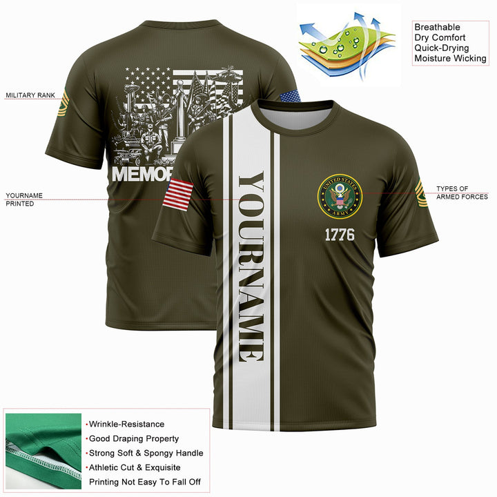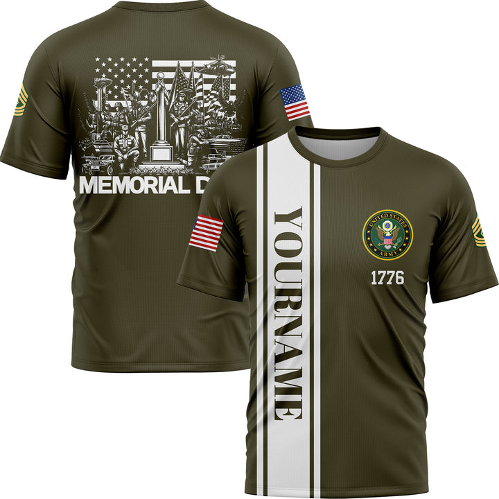 Custom Olive 1776 American Flag U.S Army Military Rank Name Memorial Day T-Shirt