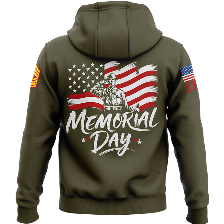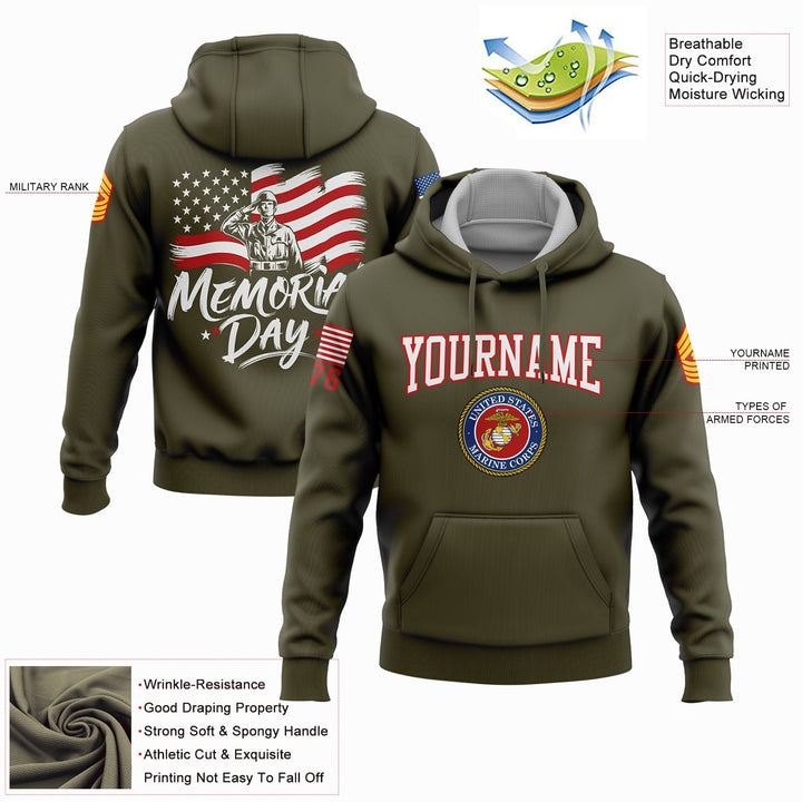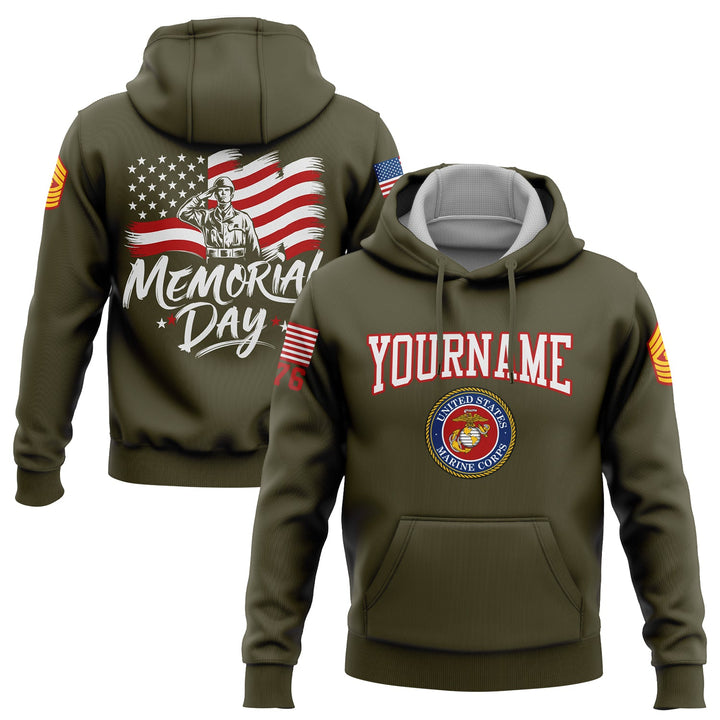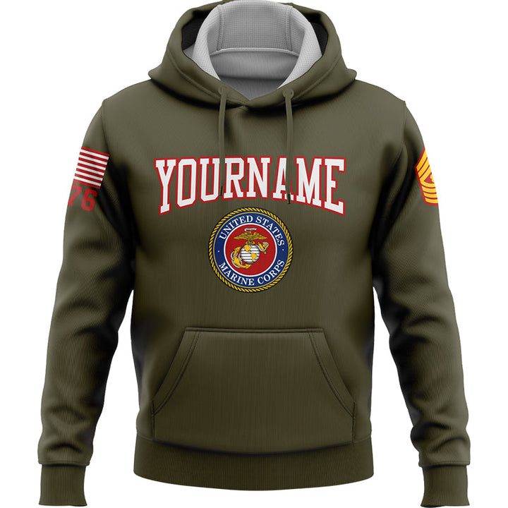 Custom Olive 1776 American Flag U.S Marine Corps Military Rank Name Memorial Day Hoodie