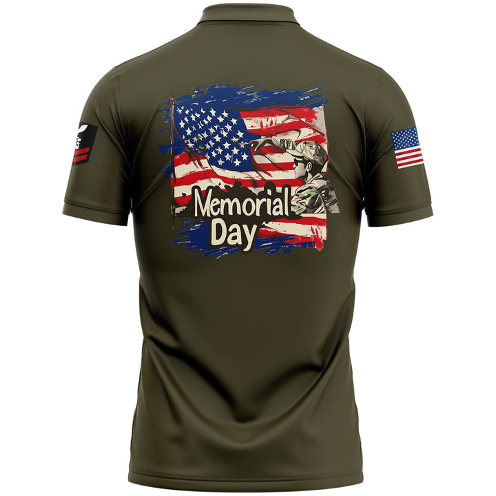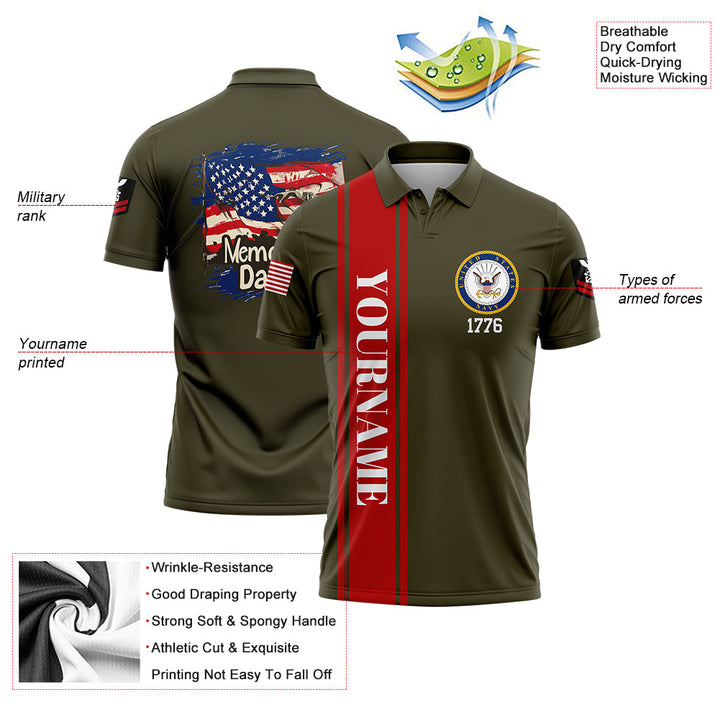 Custom Olive 1776 American Flag U.S Navy Military Rank Name Memorial Day Golf Polo Shirt