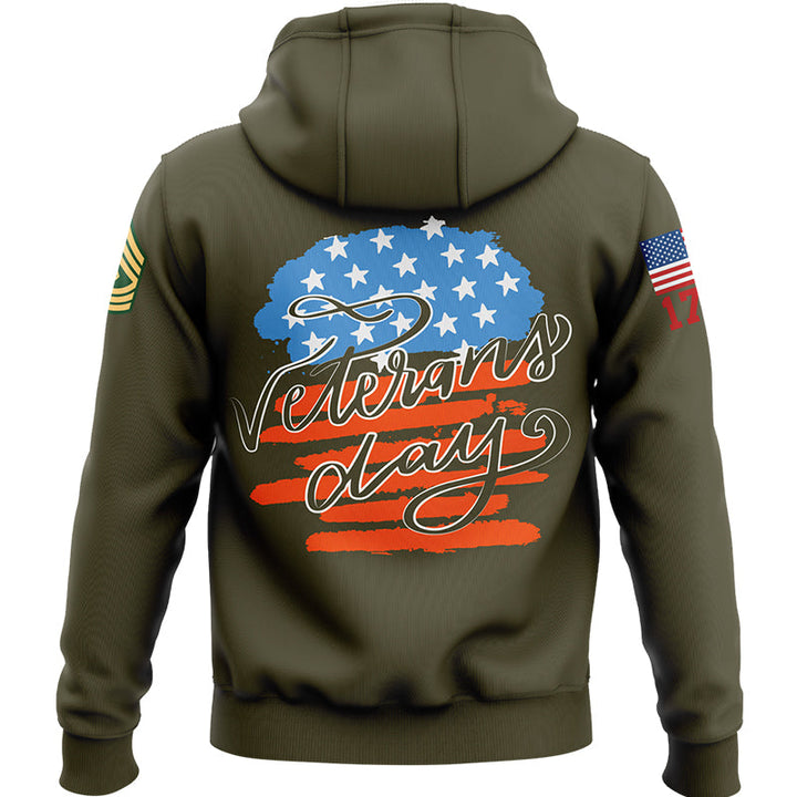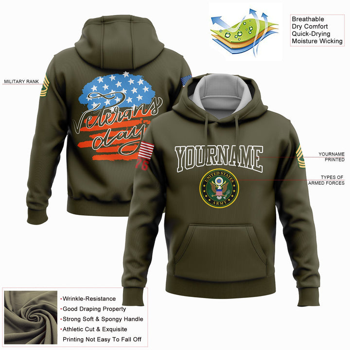 Custom Olive 1776 Flag U.S Army Military Rank Name Veterans Day Hoodie | Father's Day Gifts