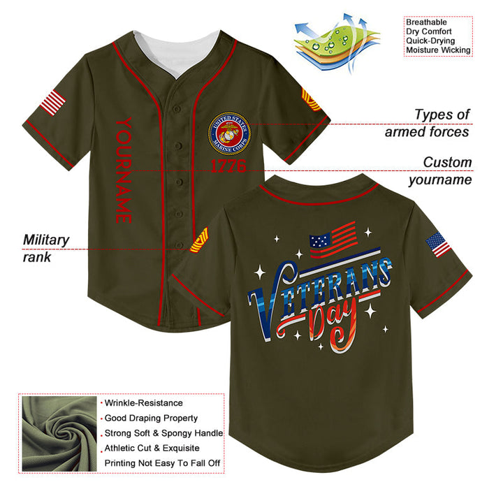 Custom Olive 1776 Flag U.S Coast Guard Military Rank Name Veterans Day Baseball Jersey | Father's Day Gifts