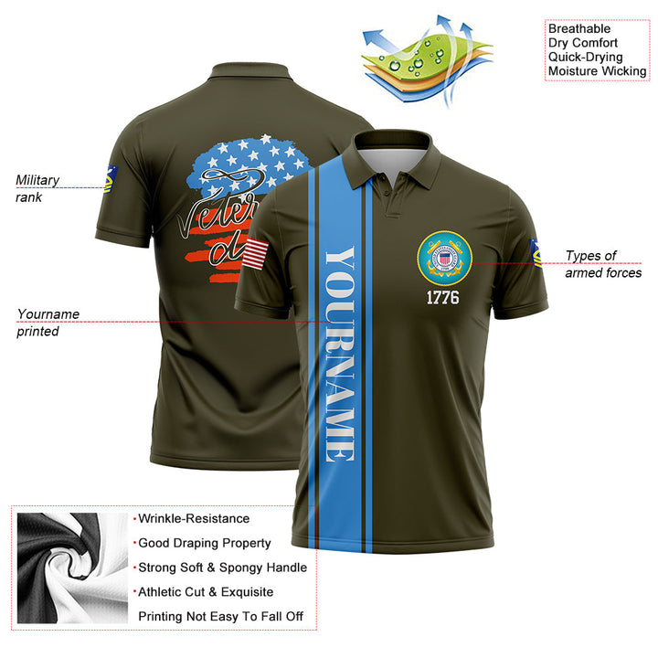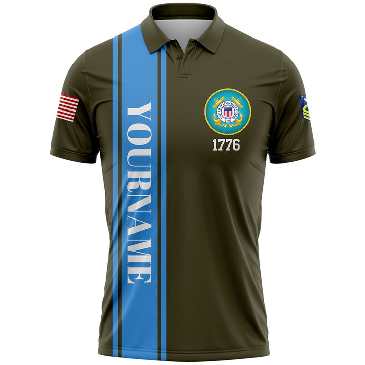 Custom Olive 1776 Flag U.S Coast Guard Military Rank Name Veterans Day Golf Polo Shirt | Father's Day Gifts