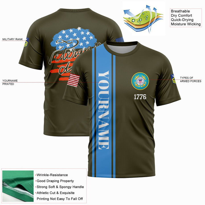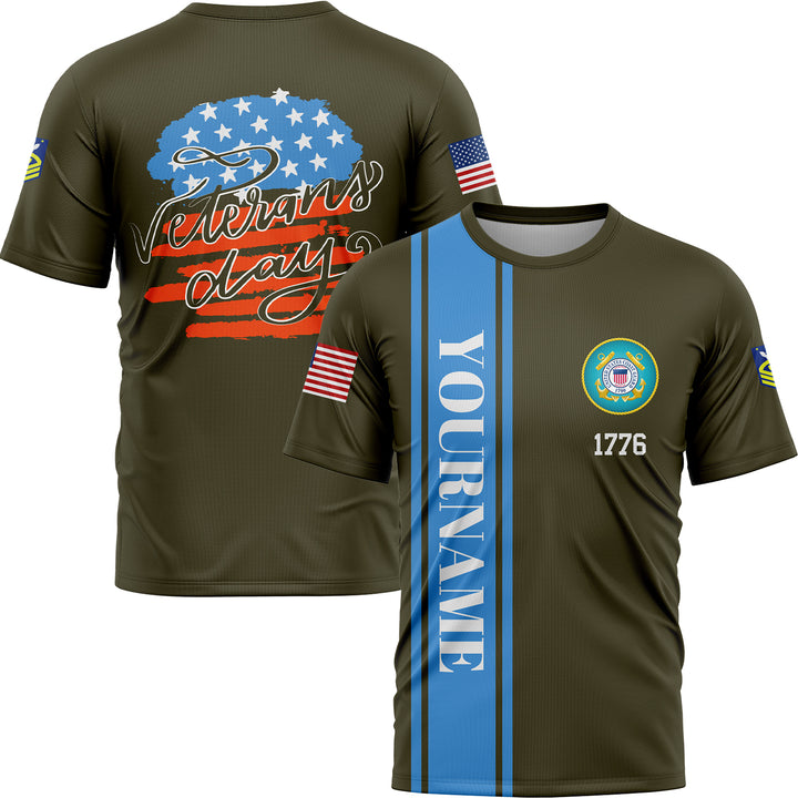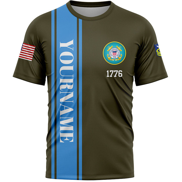 Custom Olive 1776 Flag U.S Coast Guard Military Rank Name Veterans Day T-Shirt | Father's Day Gifts
