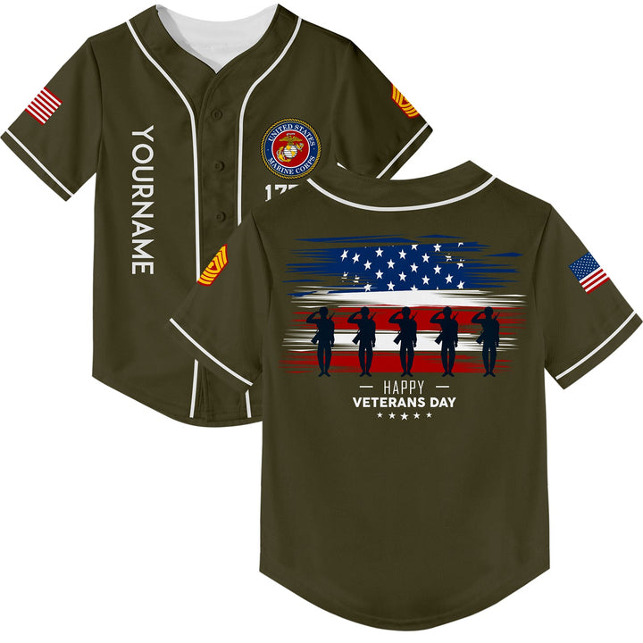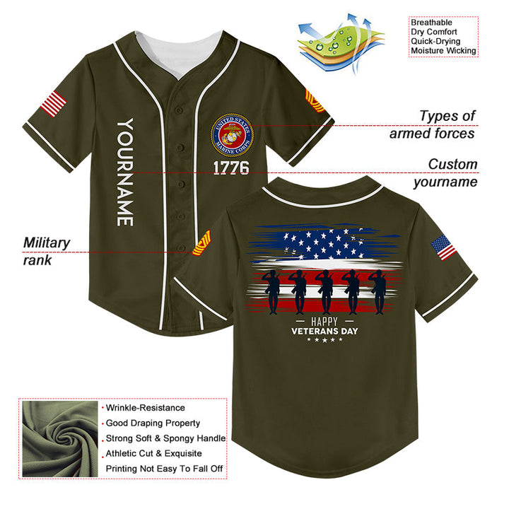 Custom Olive 1776 Flag U.S Marine Corps Military Rank Name Veterans Day Baseball Jersey | Father's Day Gifts