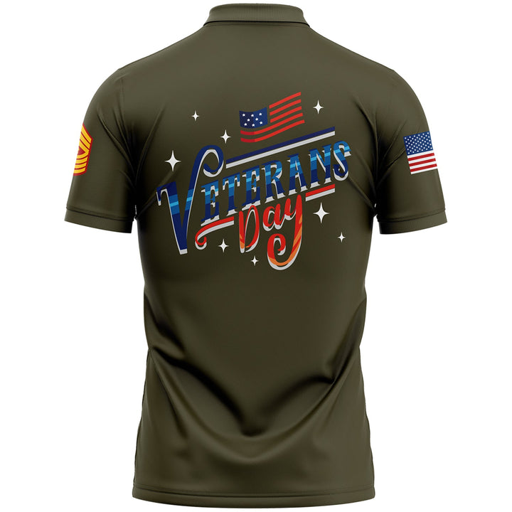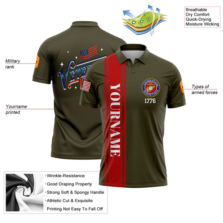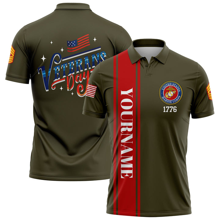 Custom Olive 1776 Flag U.S Marine Corps Military Rank Name Veterans Day Golf Polo Shirt| Father's Day Gifts