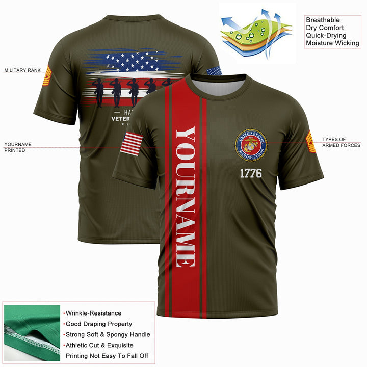 Custom Olive 1776 Flag U.S Marine Corps Military Rank Name Veterans Day T-Shirt | Father's Day Gifts