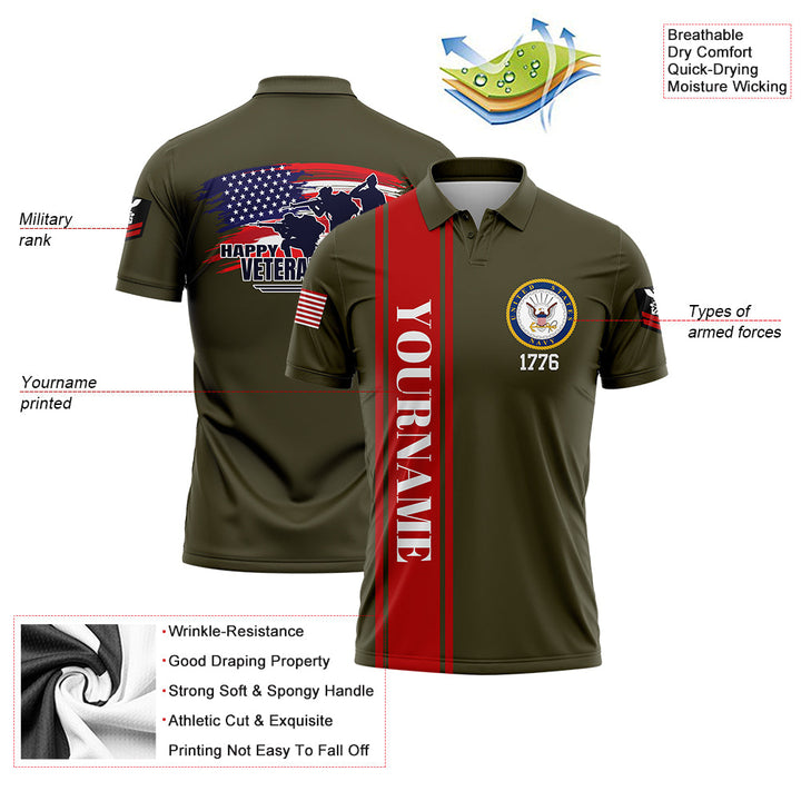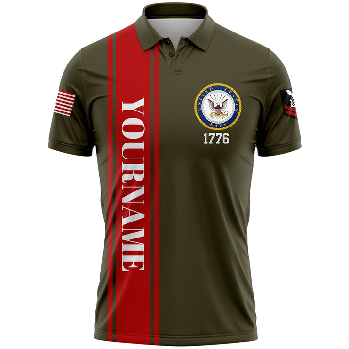 Custom Olive 1776 Flag U.S Navy Military Rank Name Veterans Day Golf Polo Shirt | Father's Day Gifts
