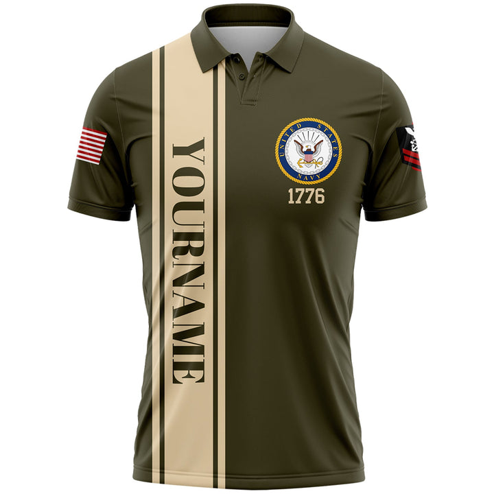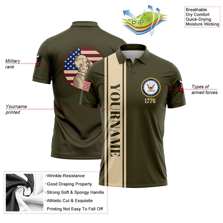 Custom Olive 1776 Flag U.S Navy Military Rank Name Veterans Day Golf Polo Shirt | Father's Day Gifts