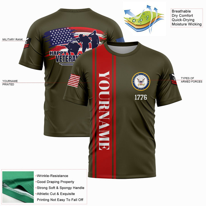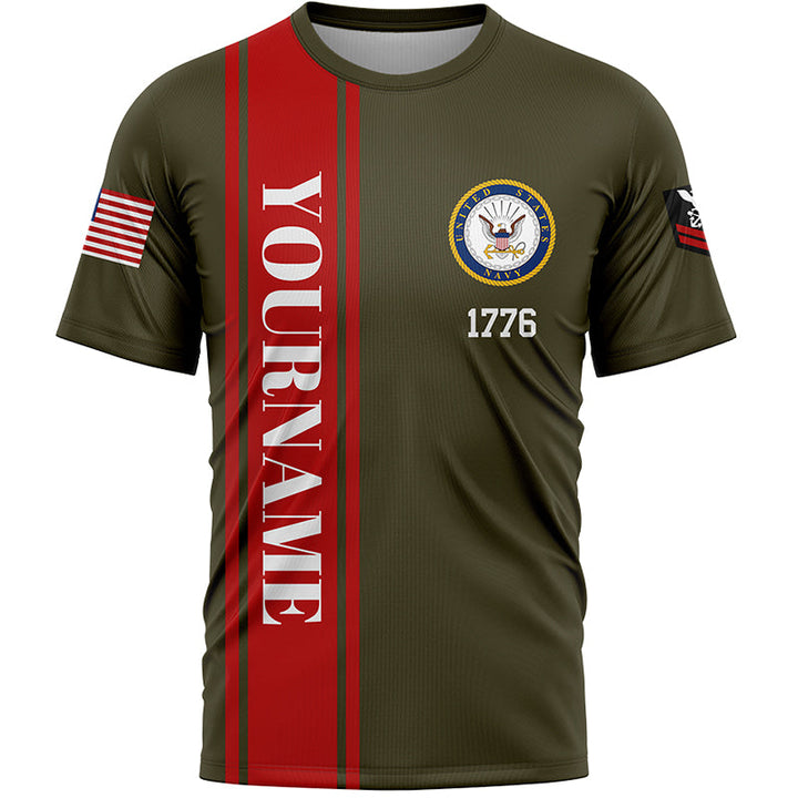 Custom Olive 1776 Flag U.S Navy Military Rank Name Veterans Day T-Shirt | Father's Day Gifts