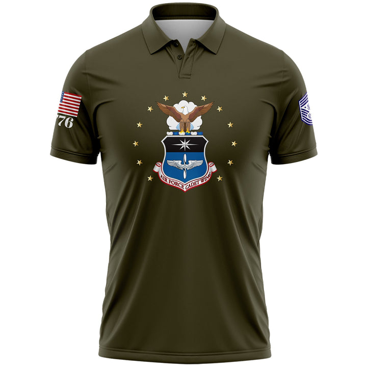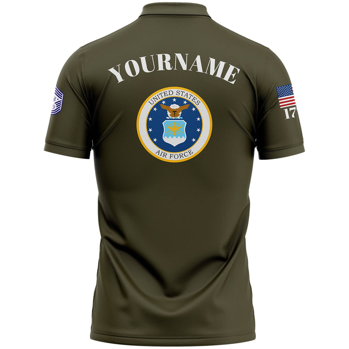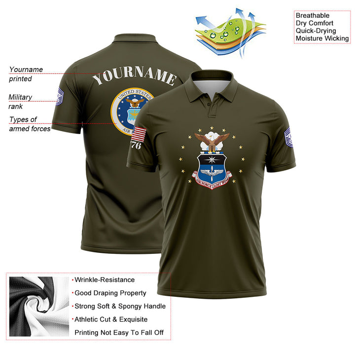 Custom Olive 1776 U.S Air Force Military Rank Name Golf Polo Shirt