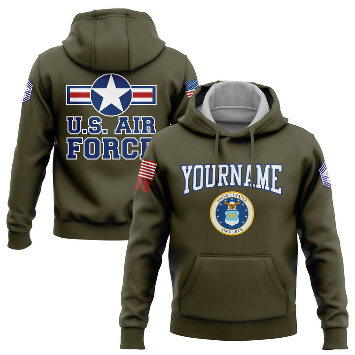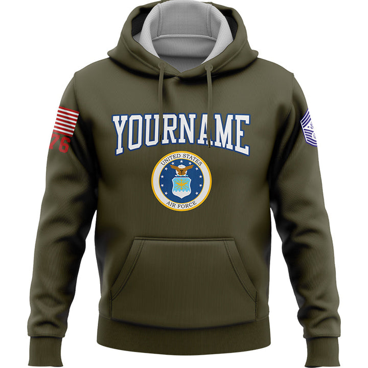 Custom Olive 1776 U.S Air Force Military Rank Name Hoodie