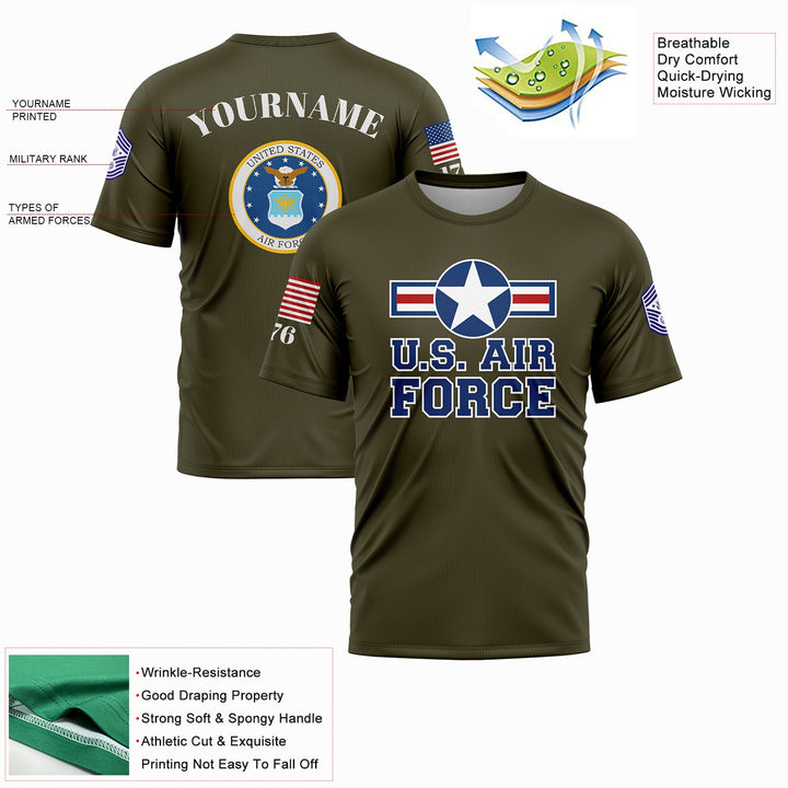 Custom Olive 1776 U.S Air Force Military Rank Name T-Shirt