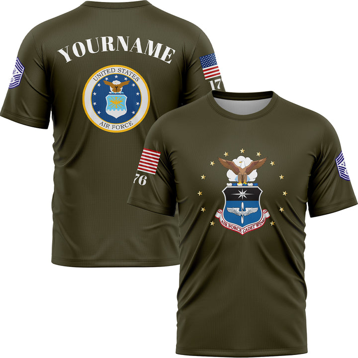 Custom Olive 1776 U.S Air Force Military Rank Name T-Shirt