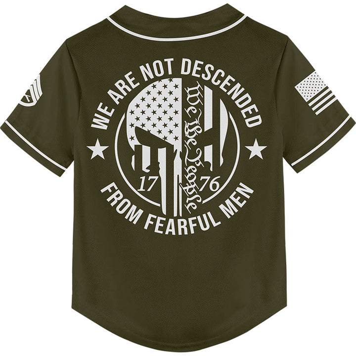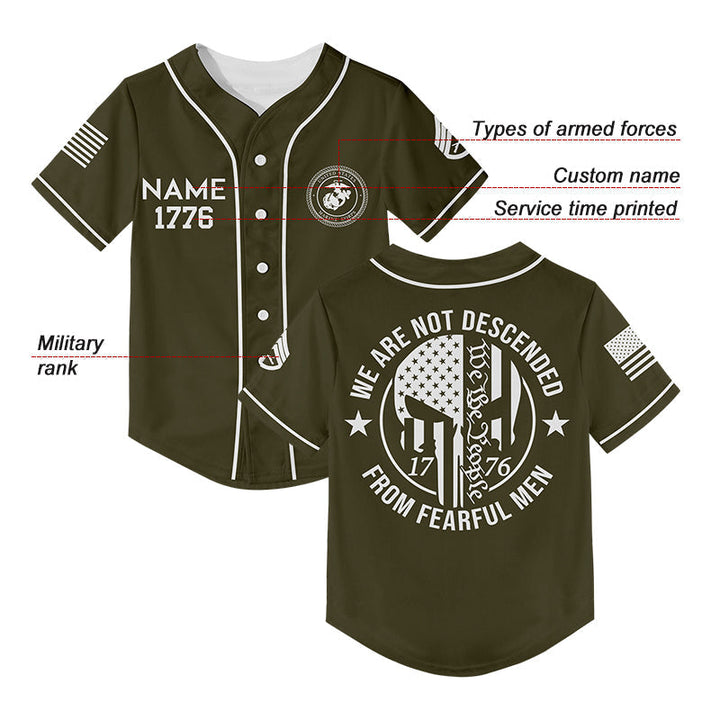 Custom Olive 1776 We Are Not Descended From Fearful Men Military Rank Veteran Name Baseball Jersey