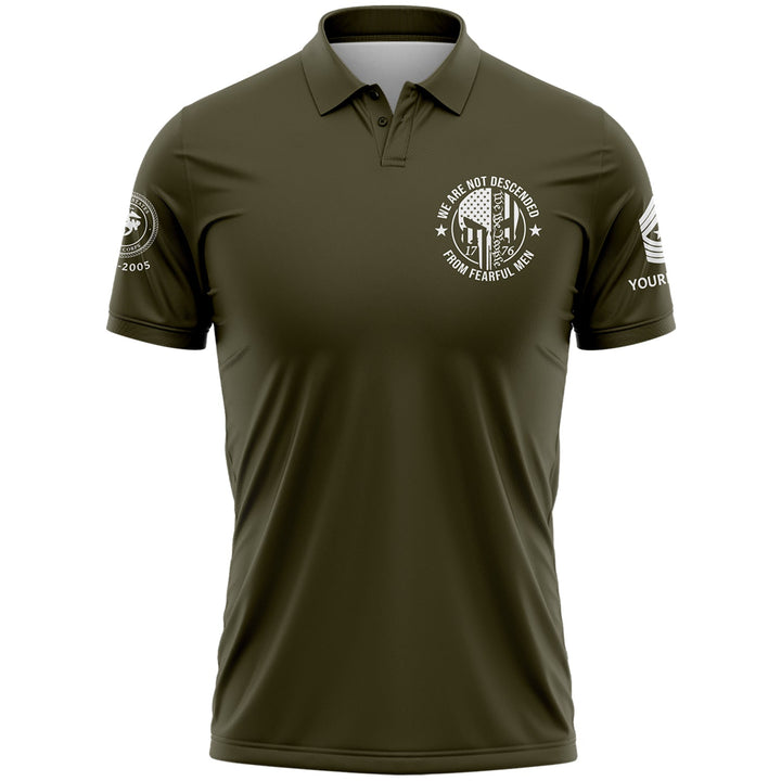 Custom Olive 1776 We Are Not Descended From Fearful Men Military Rank Veteran Name Golf Polo Shirt