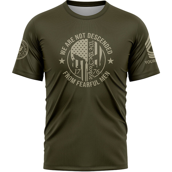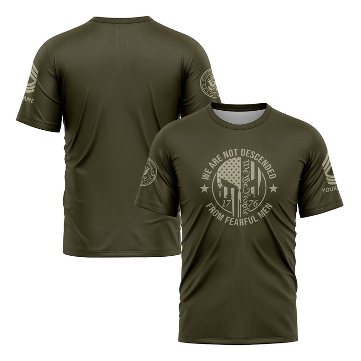 Custom Olive 1776 We Are Not Descended From Fearful Men Military Rank Veteran Name T-Shirt