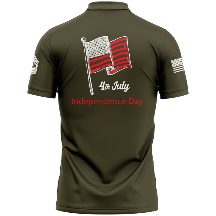 Custom Olive 4th July American Flag Military Rank Name Independence Day Golf Polo Shirt
