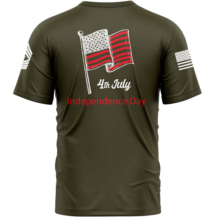 Custom Olive 4th July American Flag Military Rank Name Independence Day T-Shirt