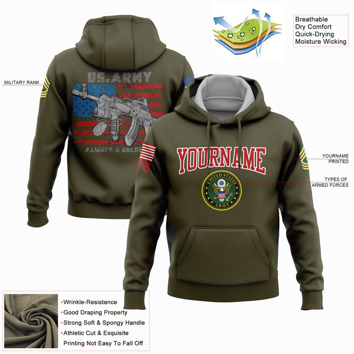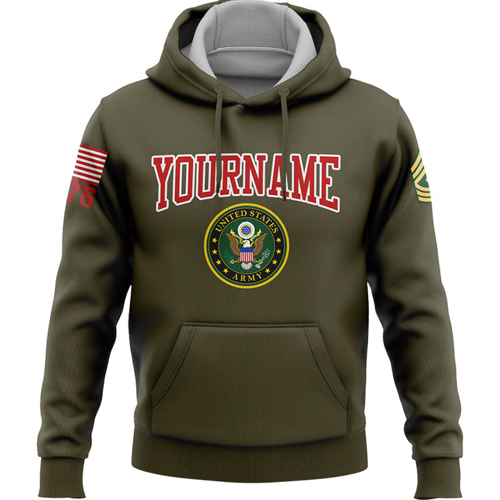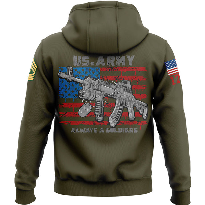 Custom Olive Always A Soldiers 1776 American Flag U.S Army Military Rank Name Hoodie