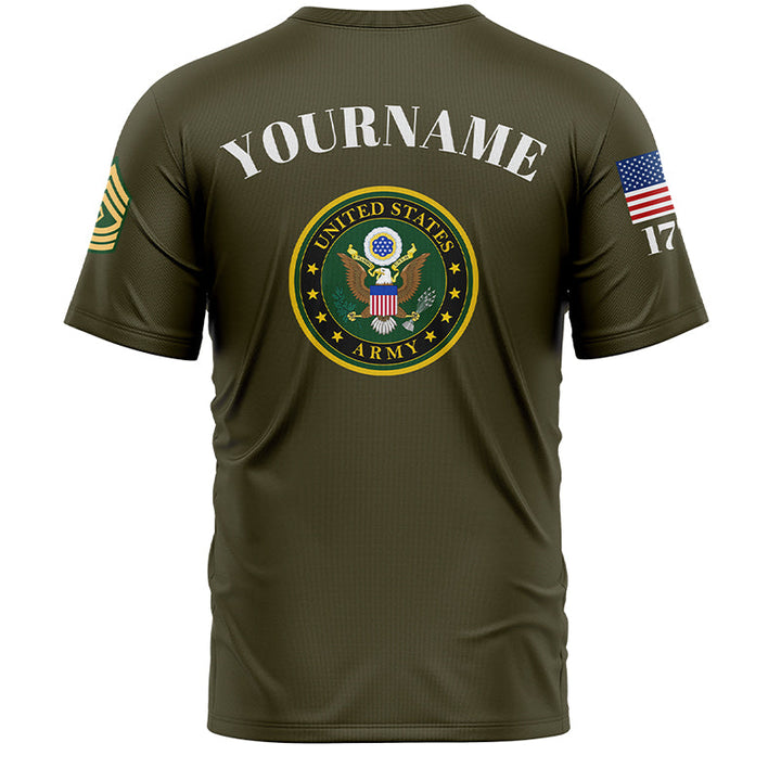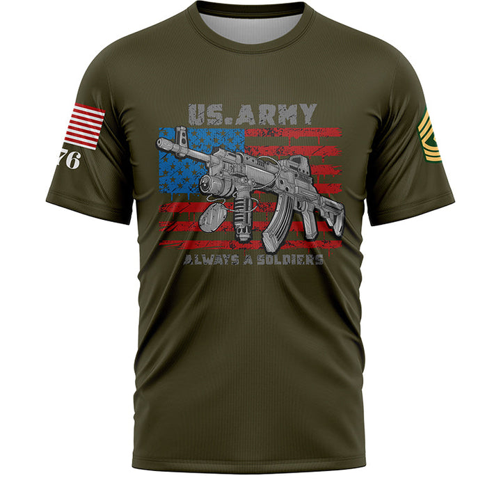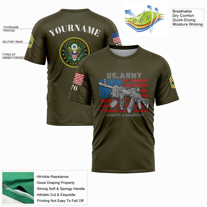 Custom Olive Always A Soldiers 1776 American Flag U.S Army Military Rank Name T-Shirt