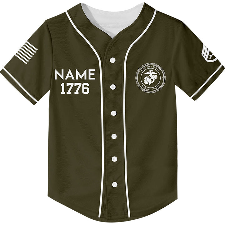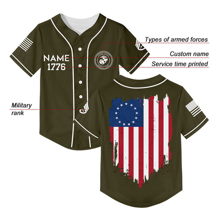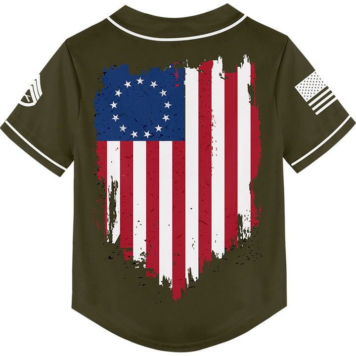 Custom Olive America Flag Military Rank Veteran Name Baseball Jersey