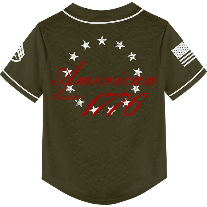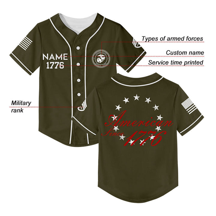 Custom Olive America Since 1776 Flag Military Rank Veteran Name Baseball Jersey