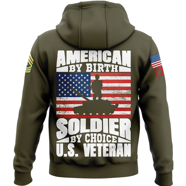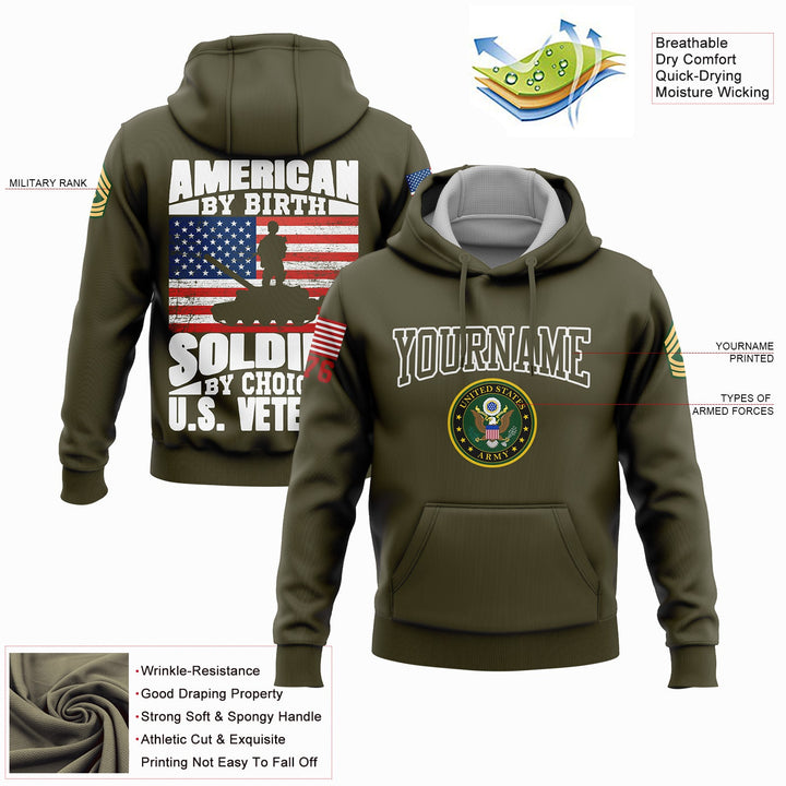 Custom Olive American By Birth Soldier By Choice 1776 Army Military Rank Name Veterans Day Hoodie | Father's Day Gifts