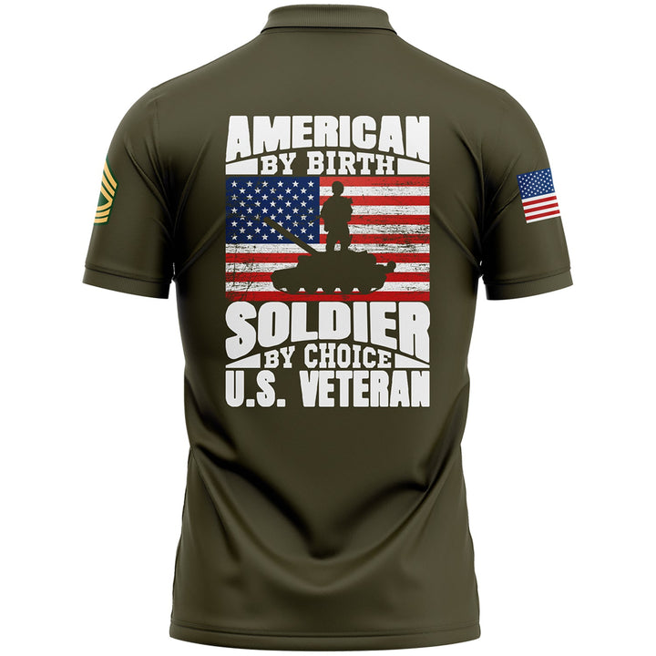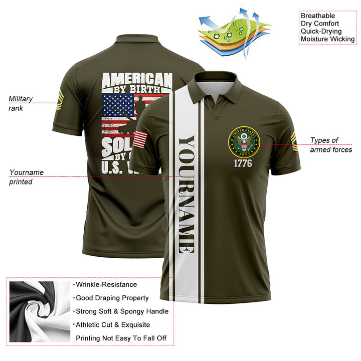 Custom Olive American By Birth Soldier By Choice 1776 Military Rank Name Veterans Day Golf Polo Shirt