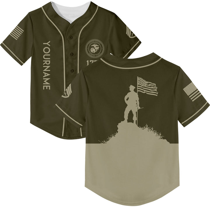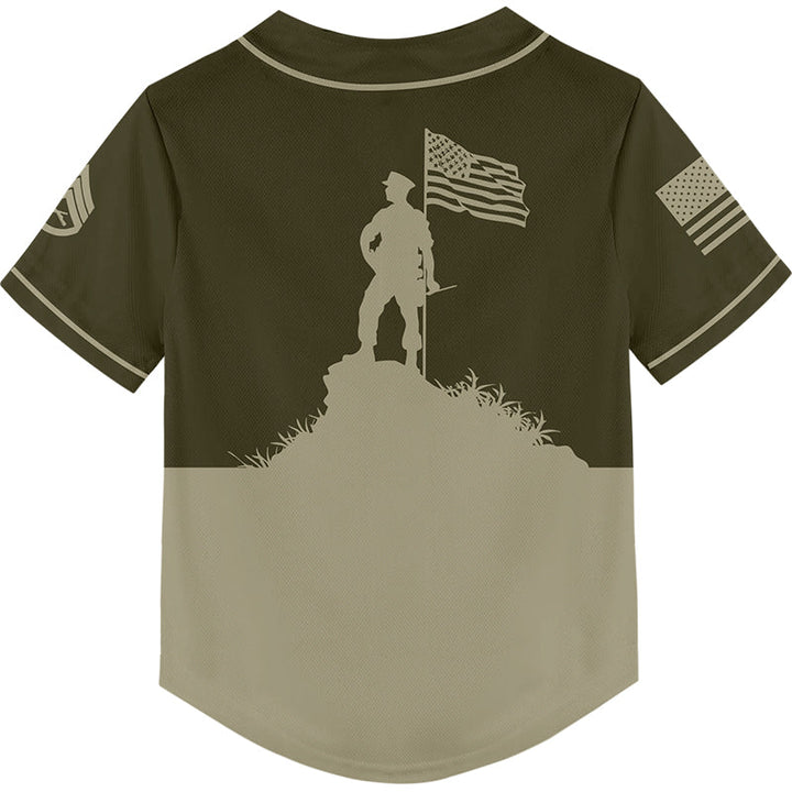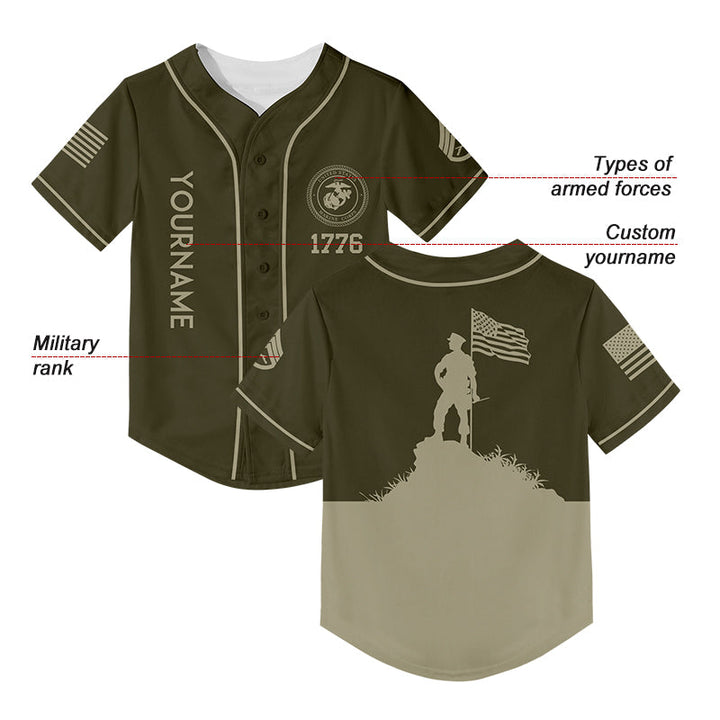 Custom Olive American Flag Military Rank Name Independence Day Baseball Jersey