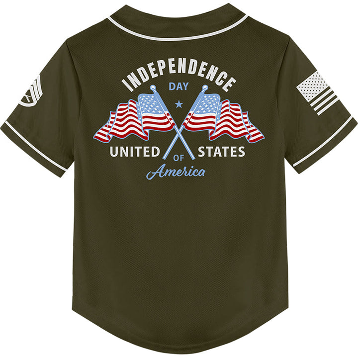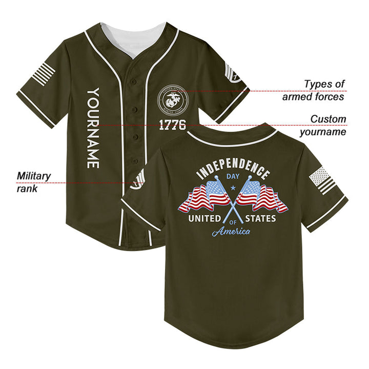 Custom Olive American Flag Military Rank Name Independence Day Baseball Jersey