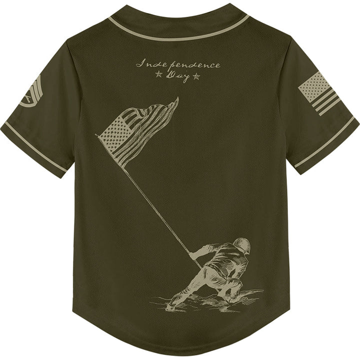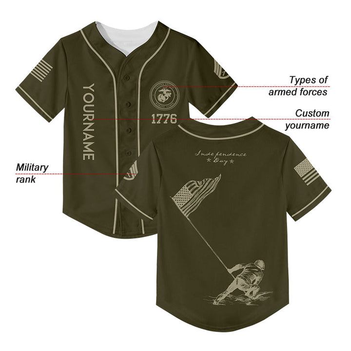 Custom Olive American Flag Military Rank Name Independence Day Baseball Jersey