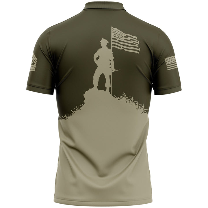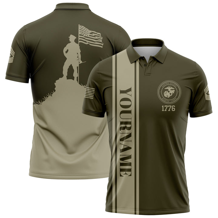 Custom Olive American Flag Military Rank Name Independence Day Golf Polo Shirt