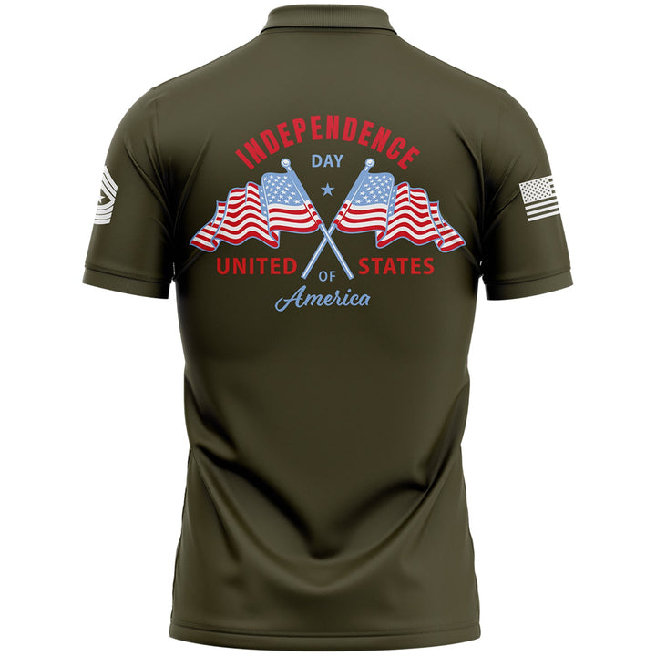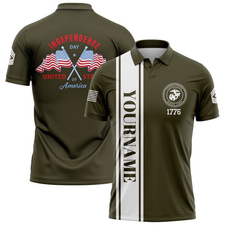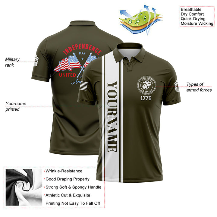 Custom Olive American Flag Military Rank Name Independence Day Golf Polo Shirt
