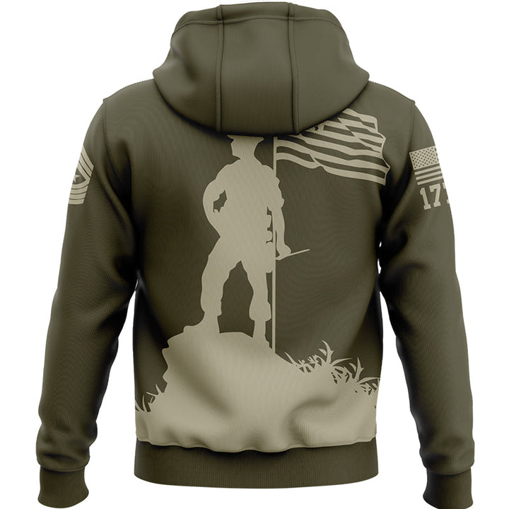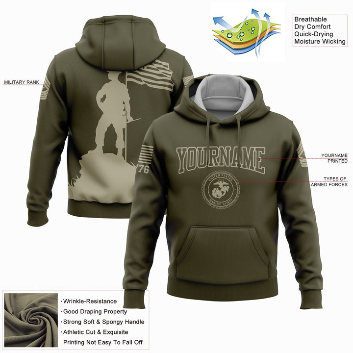 Custom Olive American Flag Military Rank Name Independence Day Hoodie | Father's Day Gifts