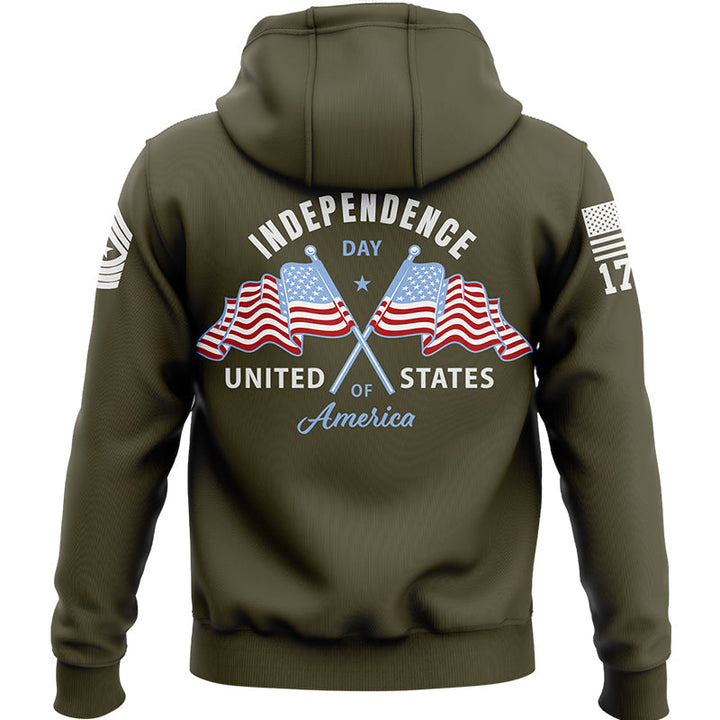 Custom Olive American Flag Military Rank Name Independence Day Hoodie | Father's Day Gifts