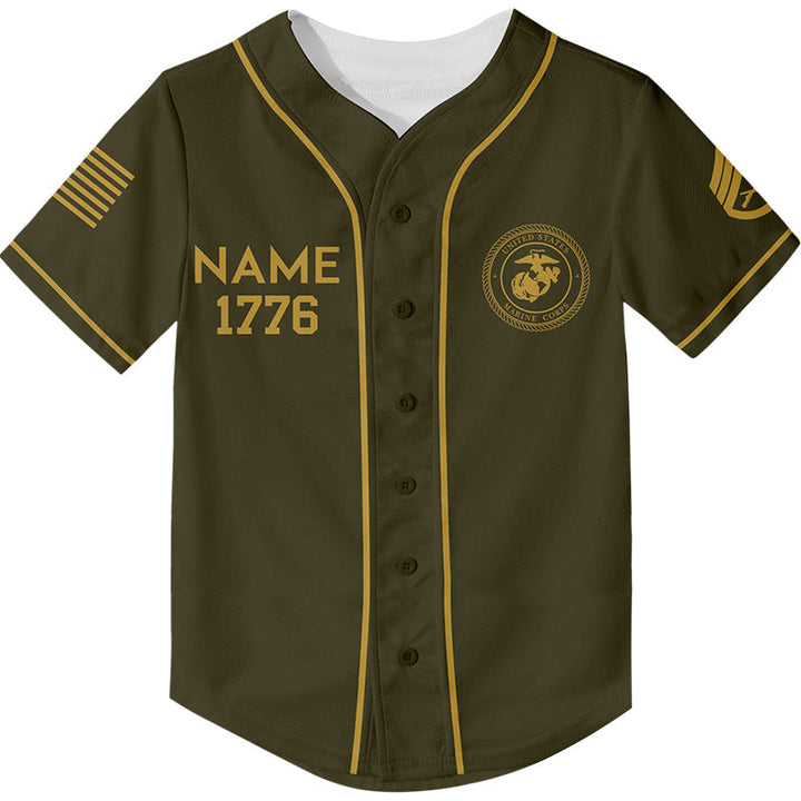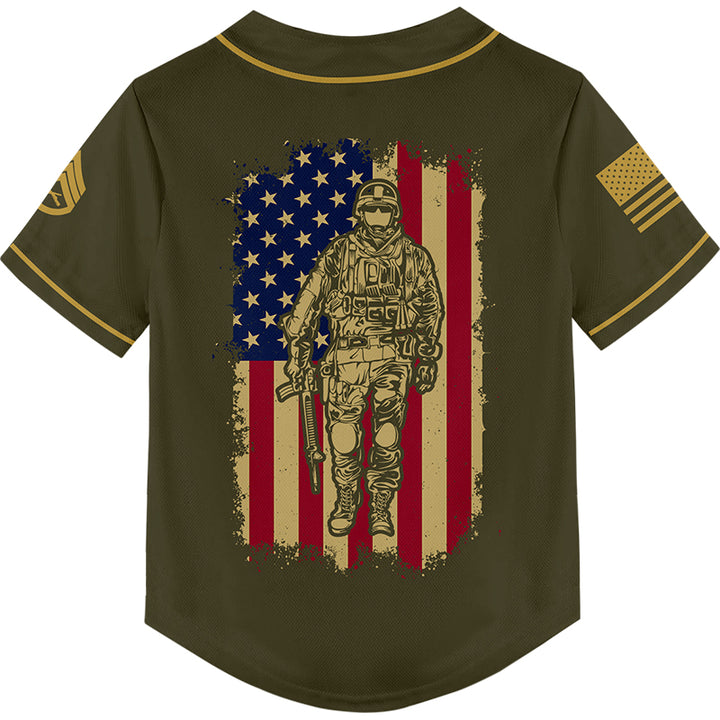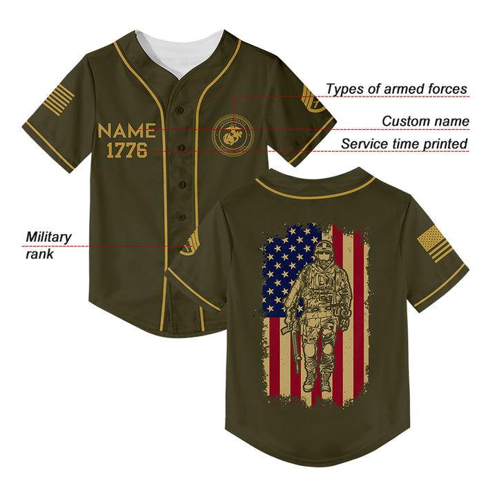 Custom Olive American Flag Military Rank Veteran Name Baseball Jersey
