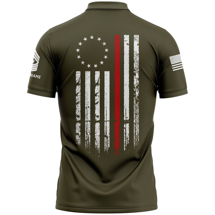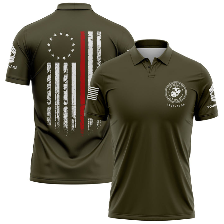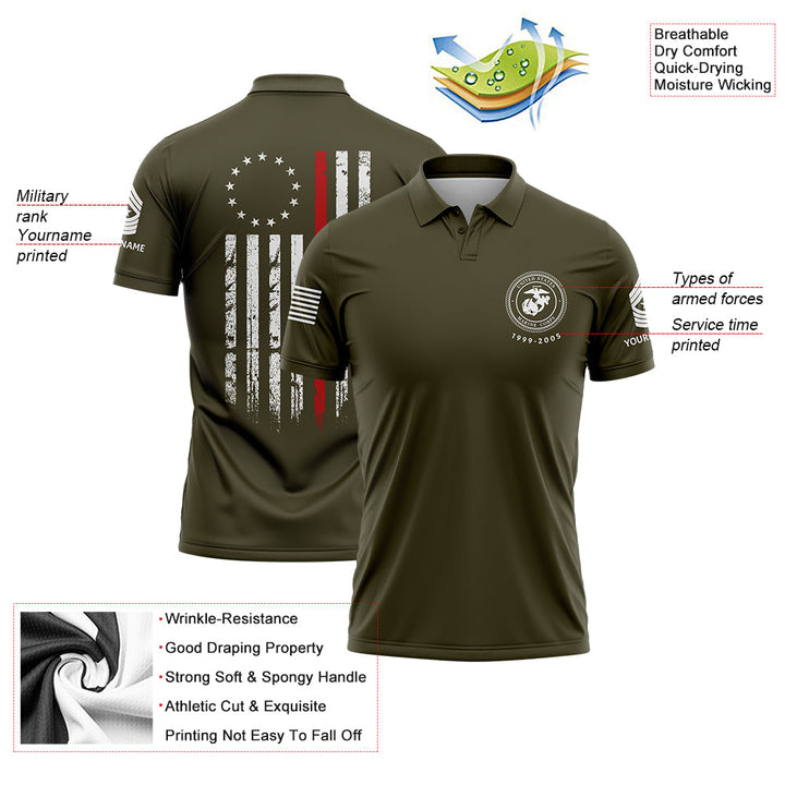 Custom Olive American Flag Military Rank Veteran Name Golf Polo Shirt