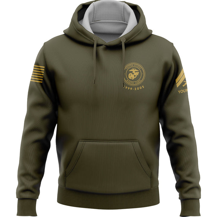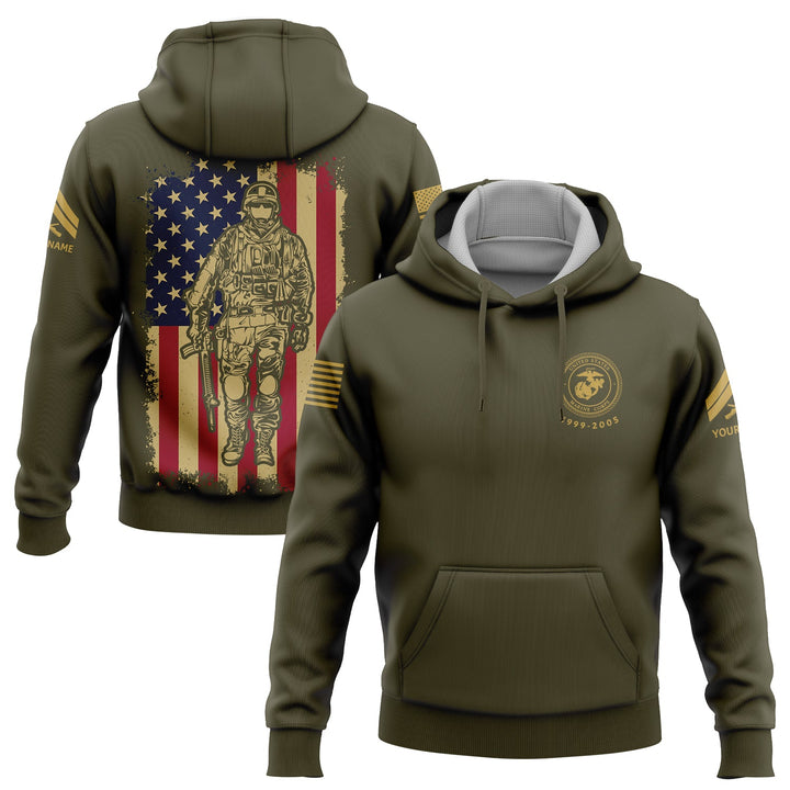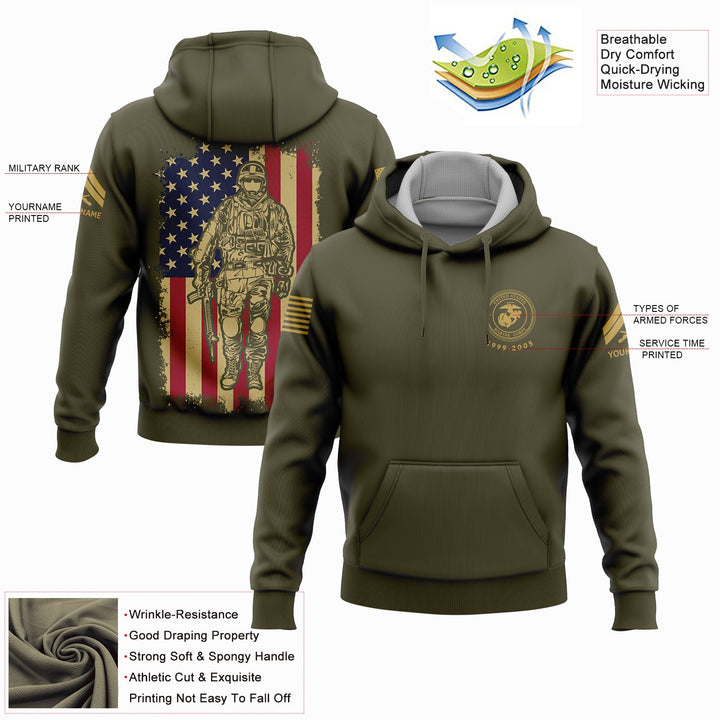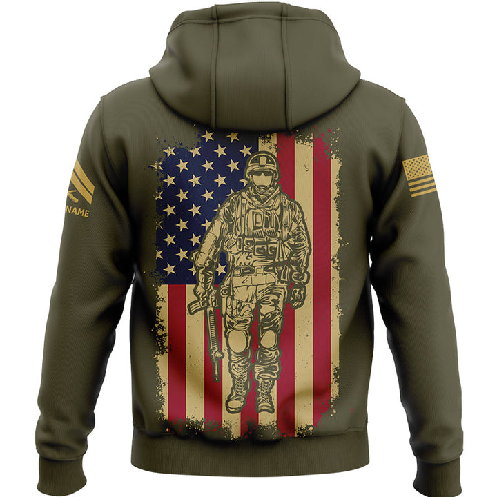 Custom Olive American Flag Military Rank Veteran Name Hoodie